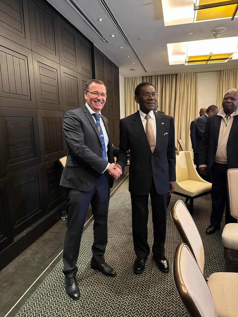 Председатель правления мультинациональной компании “Shimсо Group” провел переговоры с Президентом Экватериальной Гвинеи г-ном Теодоро Обианг Нгема Мбасаро . На встречи достигуты договоренности по различным направлениям включая ; медицинское , технического регулирования и сертификации товаров и услуг , открытие ИГХ лаборатори и сельскохозяйственной деятельности . Готовится дорожная карта реализации принятых решений